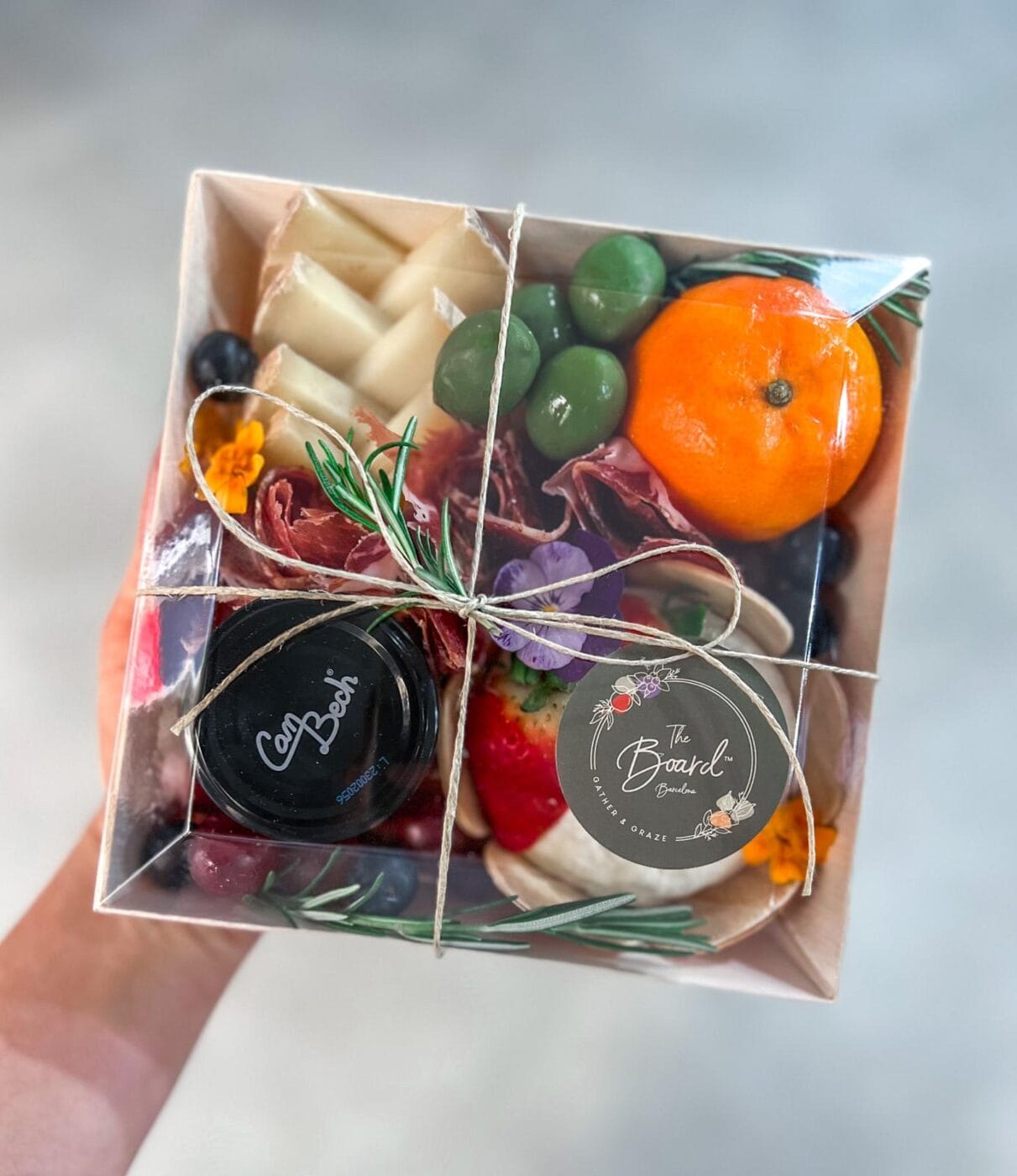 Desde fruta fresca de temporada hasta queso gourmet, crudités crujientes o postres deliciosos, esta caja artesanal está compuesta por capas y capas de los mejores ingredientes, procedentes de productores locales y artesanos. Se presenta en una caja de madera reutilizable de 17x17 cm, apta para uso alimentario.